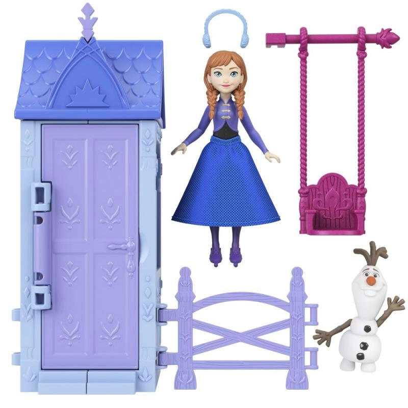 Vybrat lze z různých variant s odlišnými doplňky a funkcemi, jako jsou otevírací dveře, skládací domečky, klouzačka nebo houpačka. Každé balení obsahuje minipanenku ANNA nebo ELSA, zvířecího kamaráda (např. SVEN nebo OLAF) a tematické příslušenství pro interaktivní hraní.