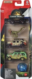 Zažijte filmové dobrodružství s kolekcí Matchbox Jurský svět! Každá sada přináší 4 kovová autíčka v měřítku 1:64 inspirovaná slavnou filmovou sérií a jednoho malého dinosaura pro ještě větší porci akce. Ideální pro děti od 3 let i sběratele. Provedení a barvy se mohou lišit.