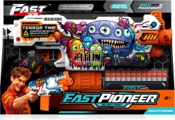 Elektrický blaster Fast Pioneer přináší dynamickou akční hru pro malé i větší hráče. Stačí vložit pěnové náboje, zapnout elektrický pohon a stisknout spoušť – o automatickou střelbu se postará rychlý mechanismus. Měkké pěnové náboje jsou bezpečné a vhodné pro domácí i venkovní souboje.