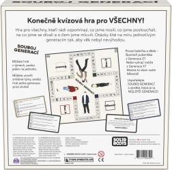 Zažijte napínavý vědomostní duel napříč časem! Tato jedinečná kvízová hra pro 2 a více hráčů prověří vaše znalosti z posledních téměř sta let. Otázky jsou rozdělené do čtyř období – Boomer, generace X, mileniálové, generace Z – a zaměřují se na dějiny, kulturu, reklamu, módu i trendy. Hraje se jednotlivě nebo v týmech a karty Výzva otestují váš důvtip a schopnosti. Ideální rodinná a párty hra na 20–60 minut, od 10 let. Pouze pro český trh.