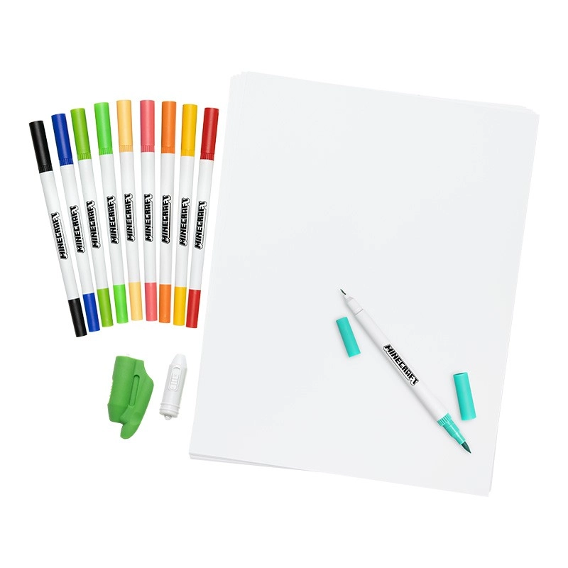 Sada obsahuje lehké oboustranné popisovače s jemným i širším hrotem pro přesné linie a plynulé stínování. Ideální pro skici, obkreslování a vybarvování motivů Minecraft.