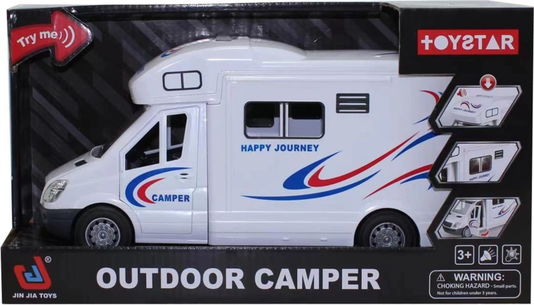 Tento realisticky zpracovaný karavan potěší malé řidiče detaily i funkcemi. Interiér se rozsvítí blikajícím světlem a na střeše je hudební panel s autentickými zvuky startu, jízdy, klaksonu a zavírání dveří. Díky otevíracím dveřím a střeše si děti snadno dohrají své příběhy.