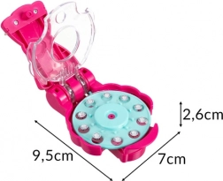 V balení najdete 180 akrylátových krystalků v odstínech růžové, fialové, modré a stříbrné a v populárních tvarech jako srdíčka, hvězdičky, kolečka a diamanty. Bezpečné provedení bez ostrých hran je šetrné k vlasům i tkaninám a splňuje normy CE / EN 71.