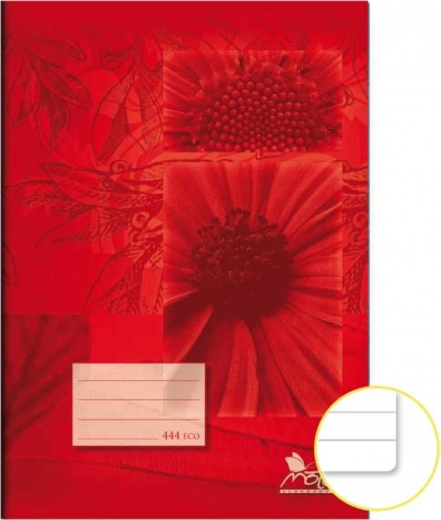 Stylový školní sešit s motivem Červené květy ve formátu A4, s linkovanou liniaturou 8 mm a okrajem. Obsahuje 40 listů z kvalitního recyklovaného papíru – ideální pro školu, kancelář i domácí poznámky.