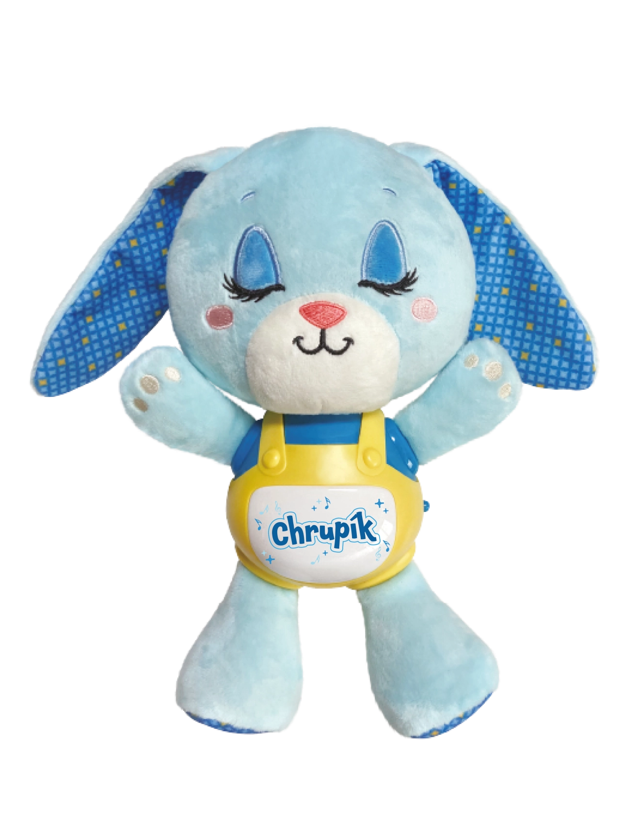 Zajíček Chrupík promění večerní rituály v příjemný, bezpečný a uklidňující zážitek. Hebký plyš láká k pomazlení, zatímco jemné světlo a melodií doprovod vytvoří klidnou atmosféru pro snadné usínání. Díky napájení na baterie je hračku možné používat kdekoliv – doma i na cestách.