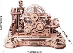 Model kombinuje dřevo, kov a plast pro spolehlivou mechanickou funkci a dynamickou estetiku. Sada je ideální pro společné chvíle s rodinou a přáteli, rozvíjí jemnou motoriku, logické myšlení a trpělivost.