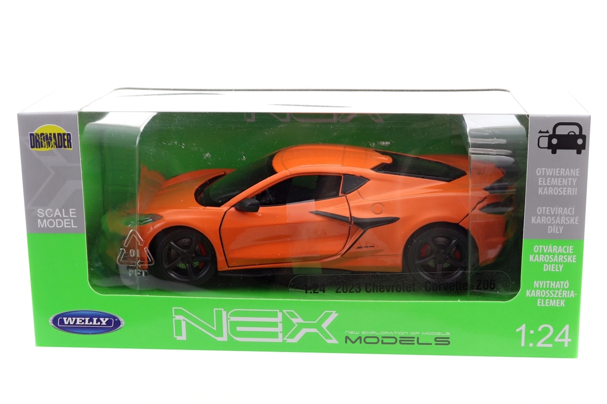 Precizní linie, ostré hrany a věrné proporce modelu CORVETTE Z06 vyniknou při vystavení i hraní.