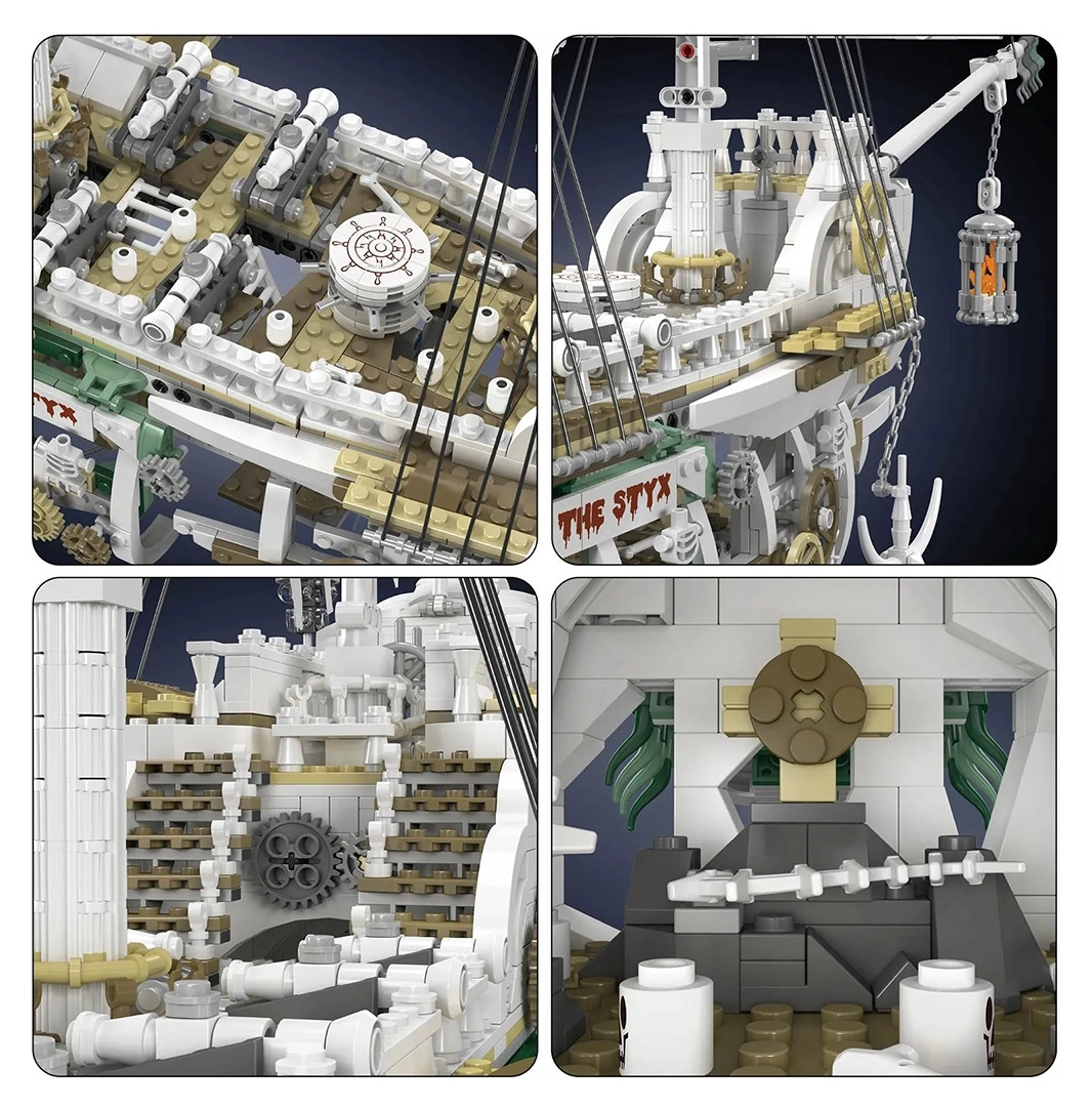 Vytvořte si vlastní legendární plavidlo – pirátskou loď Duch, která okouzlí propracovanými prvky a působivou velikostí. Model zaujme tmavým, majestátním vzhledem a množstvím realistických detailů, jež zvýrazní atmosféru pirátského světa.