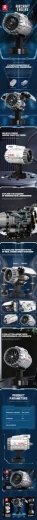 Realistická stavebnice turboventilačního motoru pro nadšence do techniky od 14 let. Z 1786 dílků postavíte detailní model s otevíratelným krytem, pohonnou jednotkou a otáčejícím se ventilátorem. Součástí je akumulátor 7,4 V a box na baterie (6× AAA, nejsou součástí).
