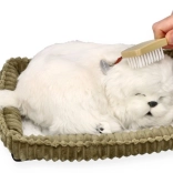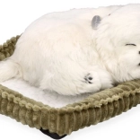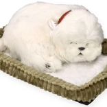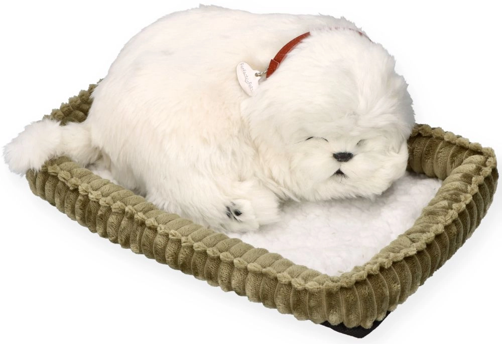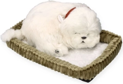 Toto spící maltézácké štěňátko v hebkém pelíšku působí až překvapivě živě. Jeho měkká plyšová srst, jemné detaily a přirozená poloha vytvářejí příjemnou, uklidňující atmosféru v dětském pokoji i obýváku. Skvělá volba pro malé milovníky zvířat, kteří si chtějí užít radost z „pejska“, ale bez starostí.