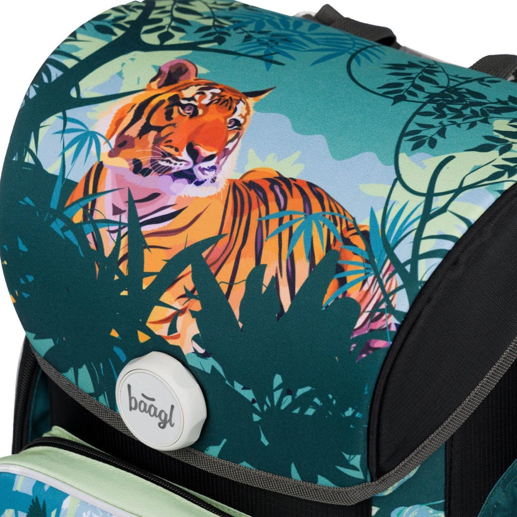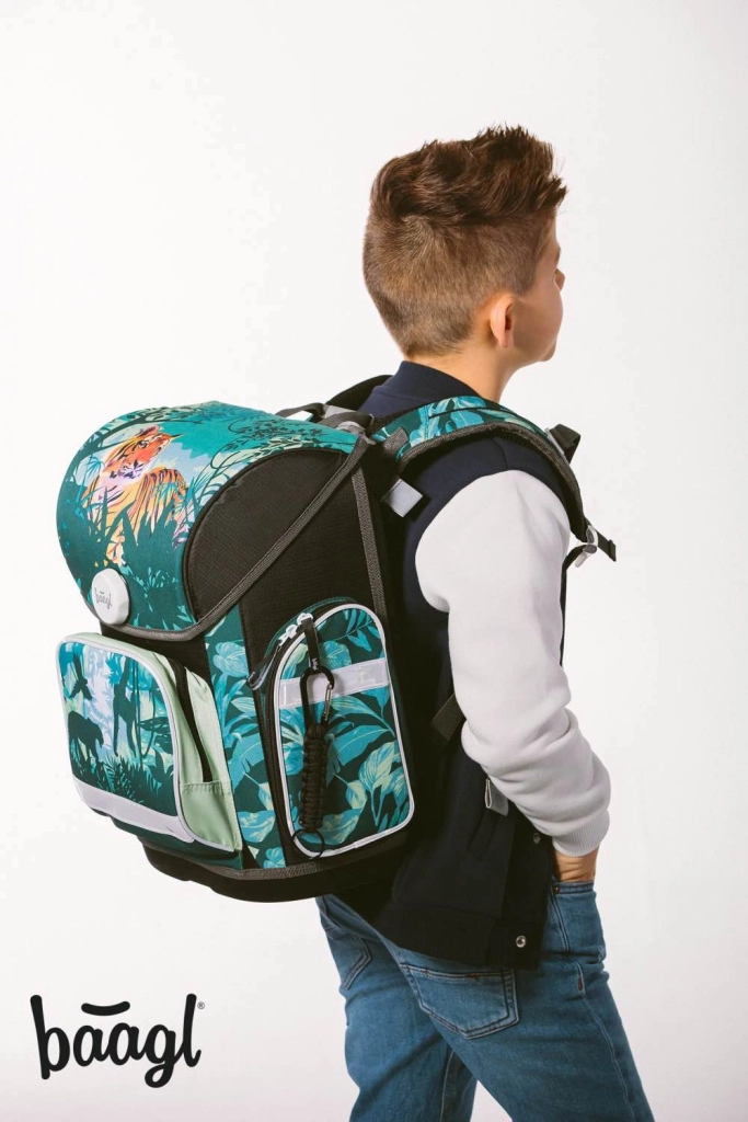 Lehká a odolná školní aktovka BAAGL s motivem tygra je ideální pro prvňáčky. Nabízí ergonomicky tvarovaná záda, posuvný zádový systém ERGO ADJUSTABLE SYSTEM, magnetické zapínání Fidlock pro snadné otevírání, reflexní prvky pro bezpečnost a promyšlenou organizaci s izolovanou přední kapsou a bočními kapsami na láhev.