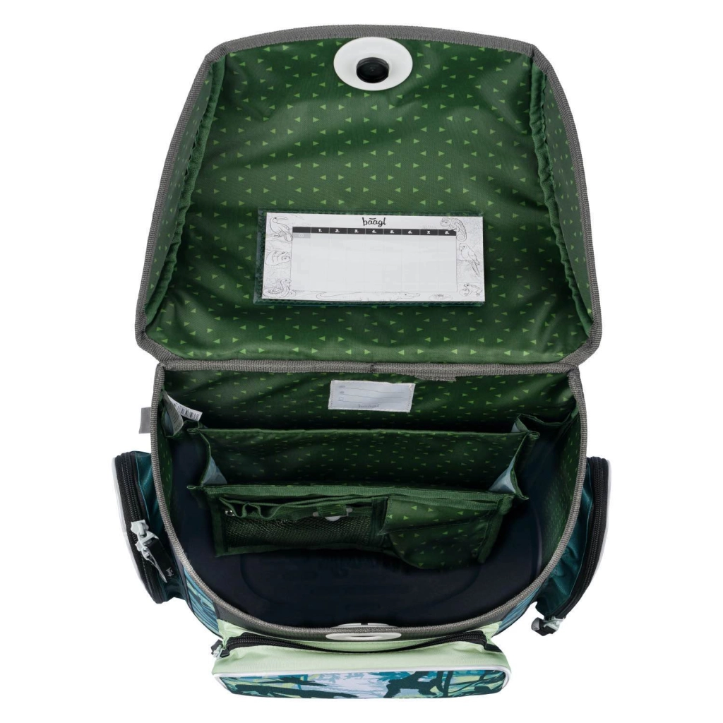 Vnitřní organizér udržuje učebnice a sešity na svém místě, průhledná kapsa s rozvrhem zvyšuje přehlednost. Izolovaná přední kapsa je ideální na svačinu, boční kapsy pojmou láhev na pití.