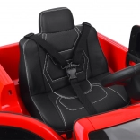Dálkový ovladač 2,4 GHz řídí směr, rychlost i brzdu. Přední LED světla a zvuk startu motoru umocňují realistický zážitek z jízdy.