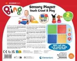 Sada přináší dětem od 18 měsíců bezpečné prostředí pro smyslové objevování. Různorodé textury (vlnky, puntíky, tvary a stopy) masírují chodidla i dlaně a podporují rovnováhu, koncentraci a vnímání barev. Díky dvěma figurkám z prostředí BING si děti vytvářejí vlastní příběhy a rozvíjejí fantazii i kognitivní dovednosti.
