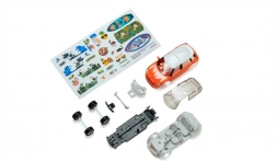 Součástí je bohatý arch samolepek s letní tématikou (palmy, slunce, racci, surfaři, vodní stříkance), se kterými vytvoříte originální styl – od tropického looku až po hravé vzory. Po dokončení je model připraven ke hře, nebo se stane atraktivním doplňkem dětské poličky.