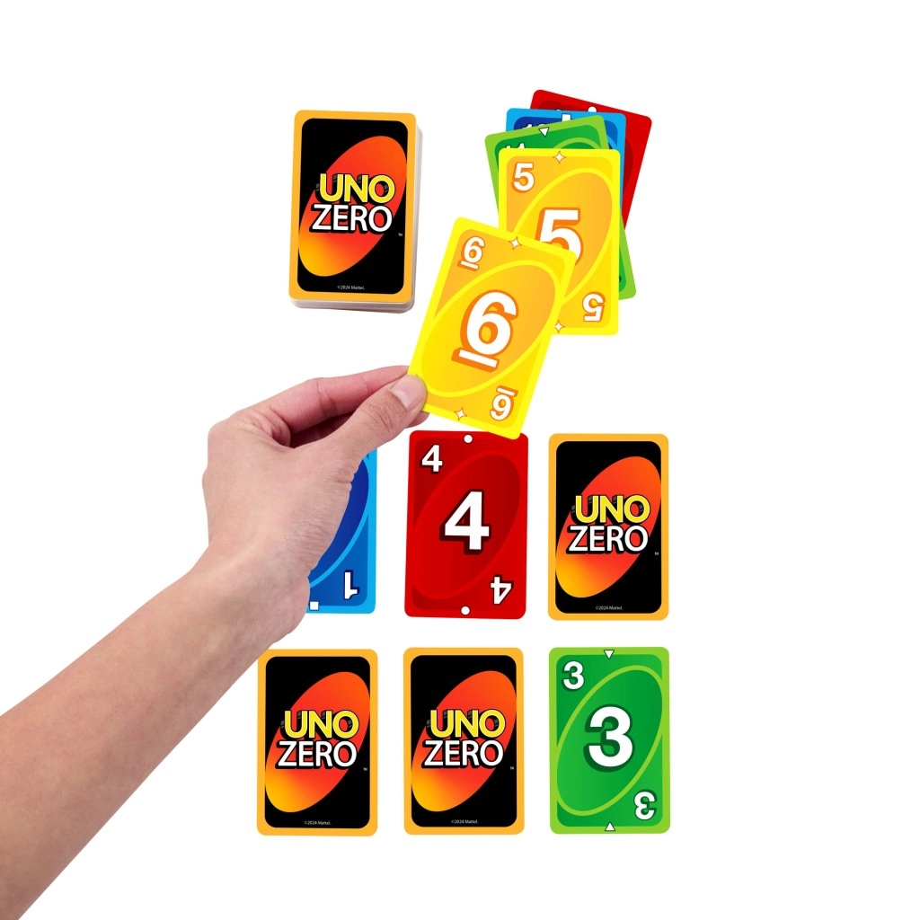 UNO Zero je svěží varianta legendární hry UNO, která kombinuje známé principy s novými možnostmi taktiky. Cílem je dosáhnout co nejnižšího skóre chytrou výměnou karet v mřížce podle barvy nebo čísla. Když vám zůstane poslední neotočená karta, nezapomeňte zvolat „UNO!“.