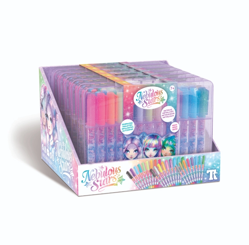 Sada gelových per Nebulous Stars je perfektní volbou pro malé i velké tvůrce. Díky široké paletě efektů snadno zvýrazníte nápisy, ilustrace i kreativní projekty a dodáte jim zářivé barvy a třpytivý efekt. Praktický plastový kufřík zajistí přehledné uložení a snadné přenášení kamkoliv.