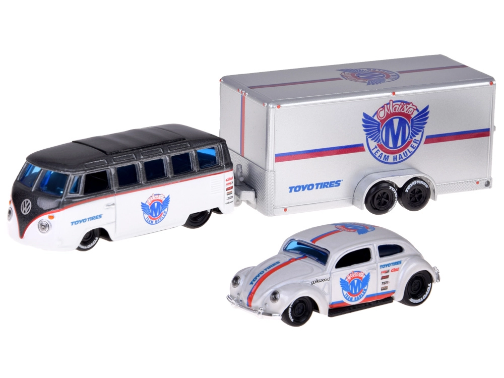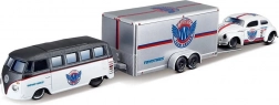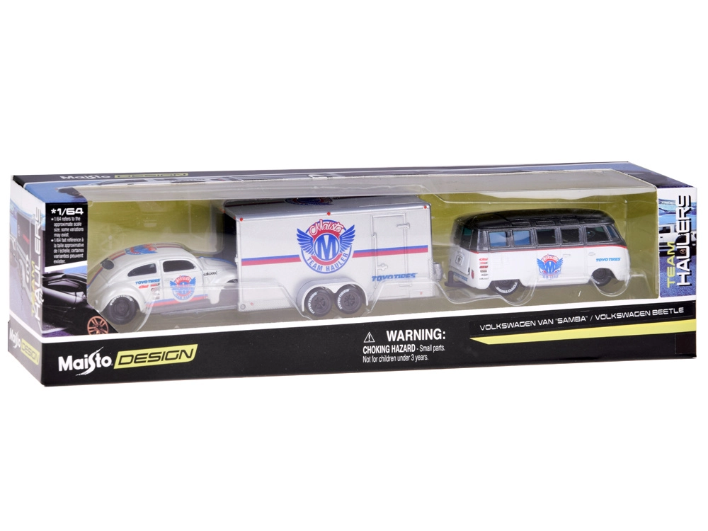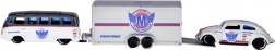 Volkswagen Van Samba je vybaven tažným hákem pro zapojení přívěsu; hák lze podle potřeby demontovat, přívěs je možné odpojit i bez odšroubování. Celý set je ideální pro nadšence do klasických vozů, sběratele měřítka 1:64 i děti, které milují kreativní hraní.