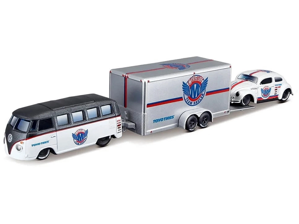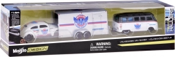 Objevte nadčasový design klasických vozů v precizním zpracování značky Maisto. Set v elegantní bílo‑stříbrné kombinaci nabízí kovová těla modelů, plastové podvozky pro lehkost a plynulou jízdu na různých površích díky gumovým kolům. Beetle se pohodlně vejde na přiložený přívěs, takže si užijete jak autentickou přepravu, tak působivou expozici ve sbírce.
