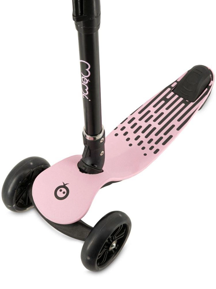 MoMi San je ideální první koloběžka pro rozvoj rovnováhy a jistoty při jízdě. Tříkolová konstrukce se dvěma předními a jedním zadním kolečkem zajišťuje výbornou stabilitu, zatímco široká protiskluzová plocha a pohodlné gripy přispívají k bezpečnému ovládání. LED kolečka se rozsvítí během jízdy a dodají zábavě i lepší viditelnost.