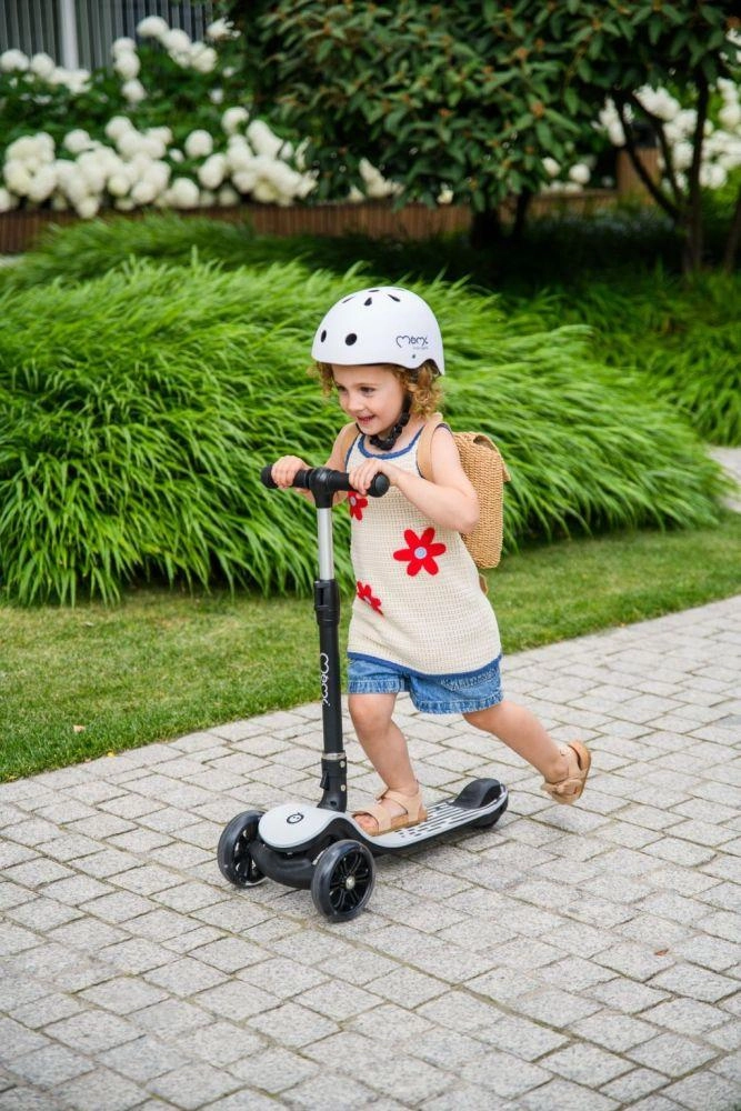 Dopřejte dětem jistotu na prvních jízdách s tříkolovou balanční koloběžkou MoMi San. Nabízí stabilní konstrukci, protiskluzovou nášlapnou plochu, měkké rukojeti a LED svítící kolečka pro zábavnou a bezpečnou jízdu. Rodiče ocení skládací rám a výškově nastavitelná řídítka ve 3 stupních, takže koloběžka roste spolu s dítětem.