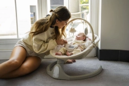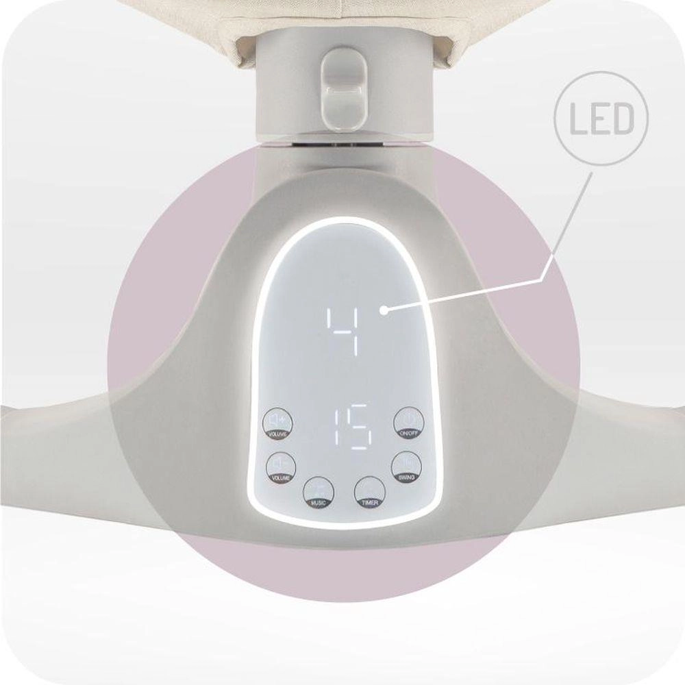 Vestavěný modul Bluetooth a 10 melodií s nastavitelnou hlasitostí umožní vytvořit příjemnou atmosféru. Pětistupňové nastavení rozsahu houpání věrně napodobuje přirozený pohyb v maminčině bříšku a časovač na 8, 15 nebo 30 minut pomůže nastavit ideální rutinu usínání. Protiskluzové podložky a pětibodové pásy zajišťují maximální bezpečí.