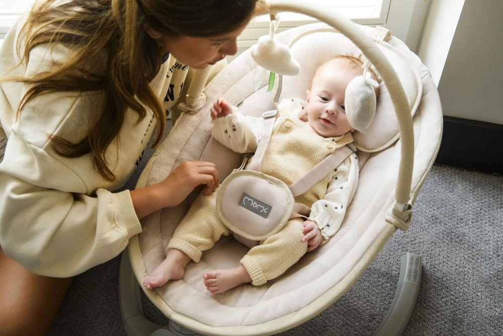MoMi Kenani je elegantní a stabilní elektrické houpátko pro děti od narození. Díky lehké konstrukci z hliníku a oceli, měkkému polstrování a ergonomické opěrce hlavy poskytuje miminku bezpečné a pohodlné zázemí. Ovládání je intuitivní přes přehledný LCD panel nebo dálkový ovladač, takže režimy i hlasitost snadno upravíte, aniž byste rušili spánek dítěte.