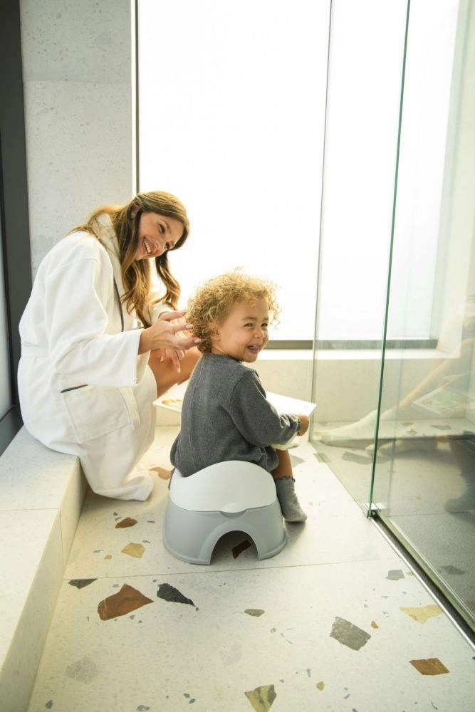 Stabilní, široká základna s protiskluzovým lemem drží nočník pevně na místě. Kompaktní a lehká konstrukce se snadno přenáší i skladuje, takže je ideální do koupelny, dětského pokoje i na cesty.