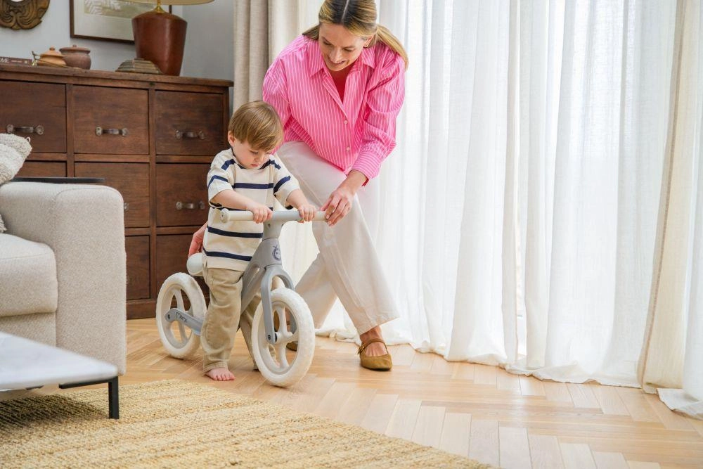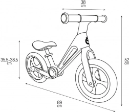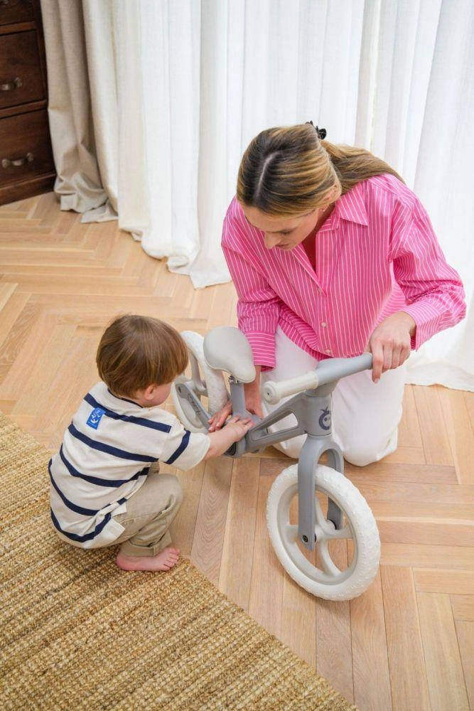 Díky širokému rozsahu nastavení sedla bez použití nářadí roste odrážedlo s dítětem. Pěnová kola EVA o průměru 12" jsou bezúdržbová a neprorazitelná, takže se můžete soustředit jen na radost z jízdy. Protiskluzové gripy a absence zámku řízení podporují bezpečné ovládání a plynulé zatáčení.