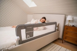Instalace je jednoduchá a rychlá – bez nářadí. Zábranu lze buď přišroubovat ke konstrukci postele, nebo ji zasunout pod matraci a zajistit popruhy. Praktická velká kapsa udrží po ruce nejnutnější drobnosti. Otevírání o 180° usnadňuje vstávání bez nutnosti demontáže.