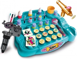 Vytvářejte vlastní dočasná tetování přesně podle své fantazie. S tetovacím studiem Crazy Chic zvládnou děti kreslit motivy od ruky, použít samolepicí šablony nebo otisknout vzory pomocí razítek. V balení najdete vše na jednom místě – barvy, třpytky, nástroje i pomůcky pro snadné nanášení.