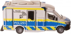 Na střeše najdete otočnou satelitní anténu, kterou lze sklopit, a autentické stříbrno-modré zbarvení s žlutými pruhy a nápisy „Polizei“. Model je skvělý pro rozšíření sbírky i jako odolná hračka pro každodenní hraní.