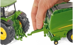 Detailně zpracovaný model lisu na kulaté balíky JOHN DEERE 990 od značky SIKU v měřítku 1:32 potěší malé i velké fanoušky zemědělské techniky. Kombinace kovu a plastu zajišťuje odolnost, pohyblivé části realistickou hratelnost a kompatibilita se Siku Farmer 1:32 snadné zapojení za traktor. Součástí je i balík sena a gumové pneumatiky s autentickým dezénem pro plynulý pohyb.