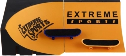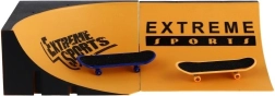 Oranžovo-černá rampa přináší reálný skate zážitek v mini verzi – ideální pro skoky, grindy i combo triky.