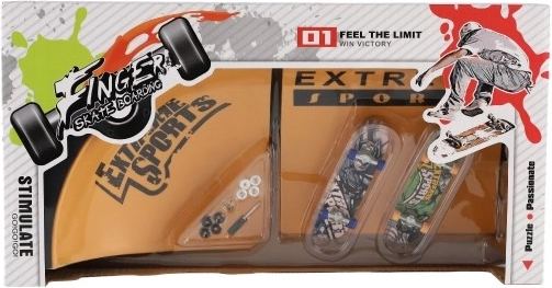 Vstup do světa fingerboardingu s kompletní sadou pro malé i velké nadšence. Dva prstové skateboardy o délce 10 cm spolu s rampou ti umožní nacvičovat triky, kombinace a soutěžit s kamarády. Díky přiloženým nástrojům si vše jednoduše seřídíš a smontuješ přesně podle sebe.