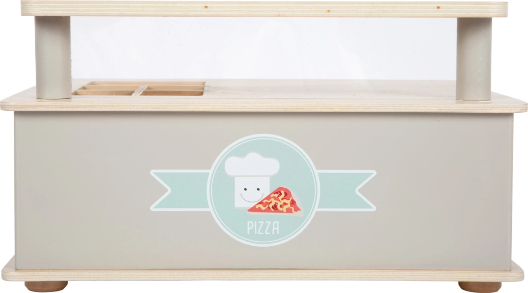 Tato kvalitní dřevěná pizzerie od small foot je skvělým doplňkem každé dětské kuchyňky. Pec s otočným knoflíkem, který při otáčení cvaká, slouží zároveň jako spíž i jako prodejní pult. Děti mohou pizzu péct, krájet i servírovat na dřevěné lopatě a díky bohatému příslušenství si zahrají na kuchaře i prodavače.
