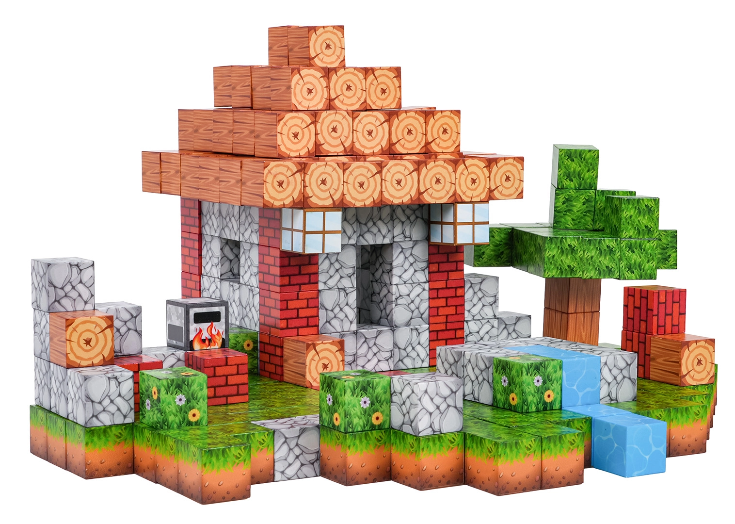 Tato bohatě vybavená sada magnetických kostek přináší dětem hodiny zábavy a učení. Texturované potisky (dřevo, kámen, tráva, voda, cihly) pomáhají vytvářet realistické scenérie v oblíbeném pixel stylu. Neodymové magnety pevně spojují jednotlivé díly a udrží stabilitu i u vyšších staveb.
