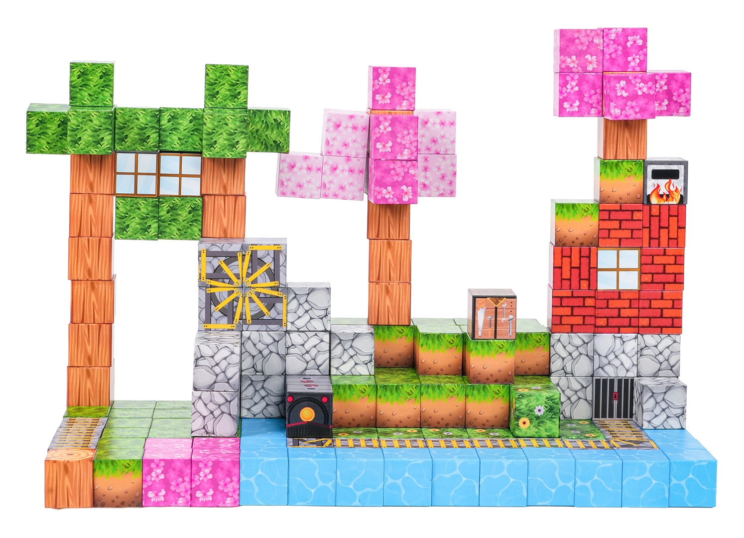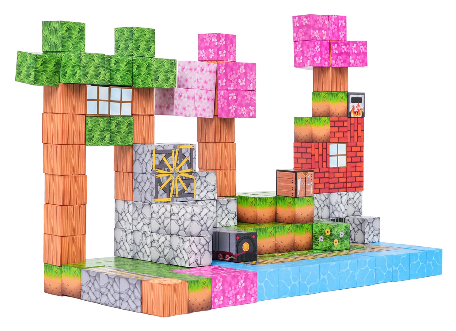 Integrované neodymové magnety zajišťují pevné spojení dílků, takže i vyšší a složitější konstrukce zůstávají stabilní a bezpečné při hraní.
