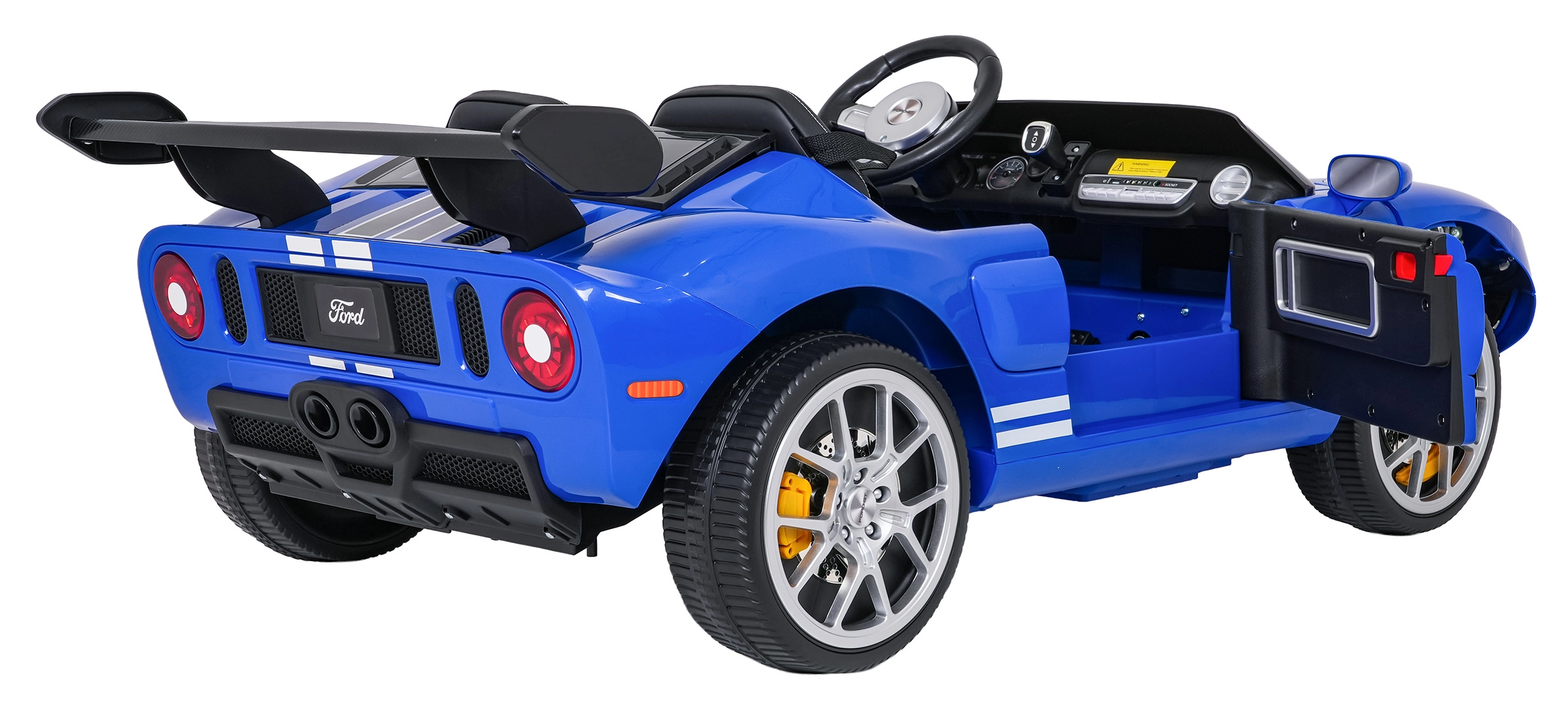Dopřejte dětem zážitek z jízdy ve sportovním voze – elektrické autíčko FORD GT spojuje realistický design s bezpečnou a pohodlnou jízdou. Čtyři motory o výkonu 100 W každý a 24V baterie zajišťují plynulý rozjezd, dvě rychlosti a dostatek síly i pro jízdu po zahradě. Měkká EVA kola a zadní tlumiče zvyšují komfort a tichost provozu.