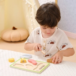 Hladké dřevěné části, dětský nožík a praktické prkénko s úchopem zajišťují bezpečnou a pohodlnou hru už od 18 měsíců.