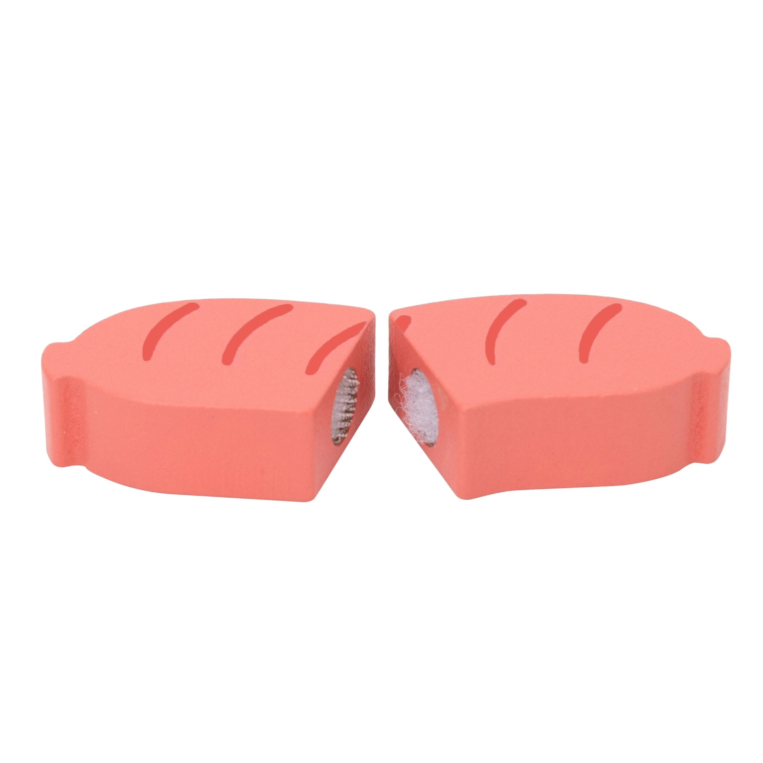 Tato dřevěná sada na krájení přináší dětem realistickou kuchařskou zkušenost v bezpečné podobě. Jednotlivé kousky „masa“ jsou spojeny suchým zipem, takže je lze snadno rozdělit dřevěným nožíkem a znovu skládat. Hra přirozeně rozvíjí jemnou motoriku, logické myšlení i spolupráci při společné zábavě s rodiči nebo kamarády.