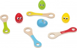 Autentická pohybová hra, která zabaví malé i velké. Sada obsahuje čtyři dřevěné lžičky s různě velkými otvory a čtyři barevná vajíčka s legračními obličeji. Díky dvěma úrovním náročnosti se hra přizpůsobí schopnostem dětí a krok za krokem rozvíjí jejich soustředění a jistotu pohybu.