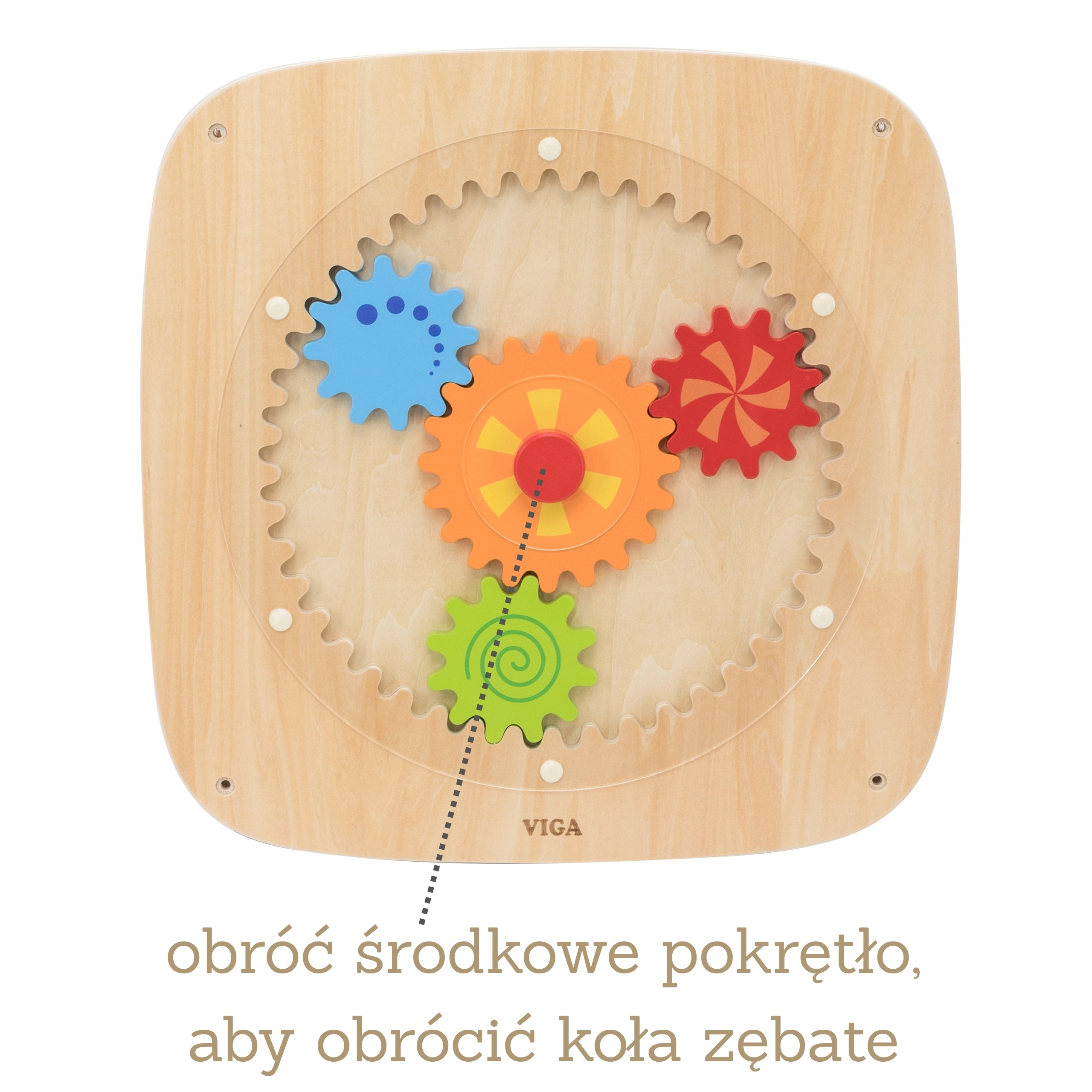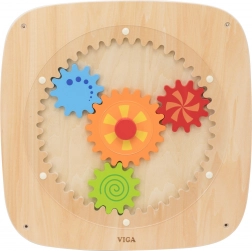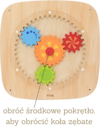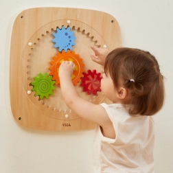 Tato dřevěná nástěnná tabule s barevnými ozubenými koly je navržená tak, aby dětem přinášela radost z objevování. Otočením centrálního kolečka se roztočí všechny převody najednou, což dětem přirozeně ukazuje princip síly, pohybu a příčinných souvislostí. Různé barvy a vzory na kolech vytvářejí při otáčení atraktivní vizuální efekty.