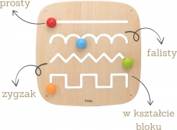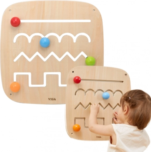Dřevěná tabule VIGA promění každodenní hraní v smysluplnou aktivitu. Děti posouvají kuličky po různých dráhách, zkoumají přímky, vlny, zigs‑zagy a blokové tvary, trénují úchop, přesnost pohybu a učí se pojmy jako křivky a úhly. Přírodní dřevo, zaoblené rohy a pevné uchycení zajišťují bezpečí při každém dotyku.