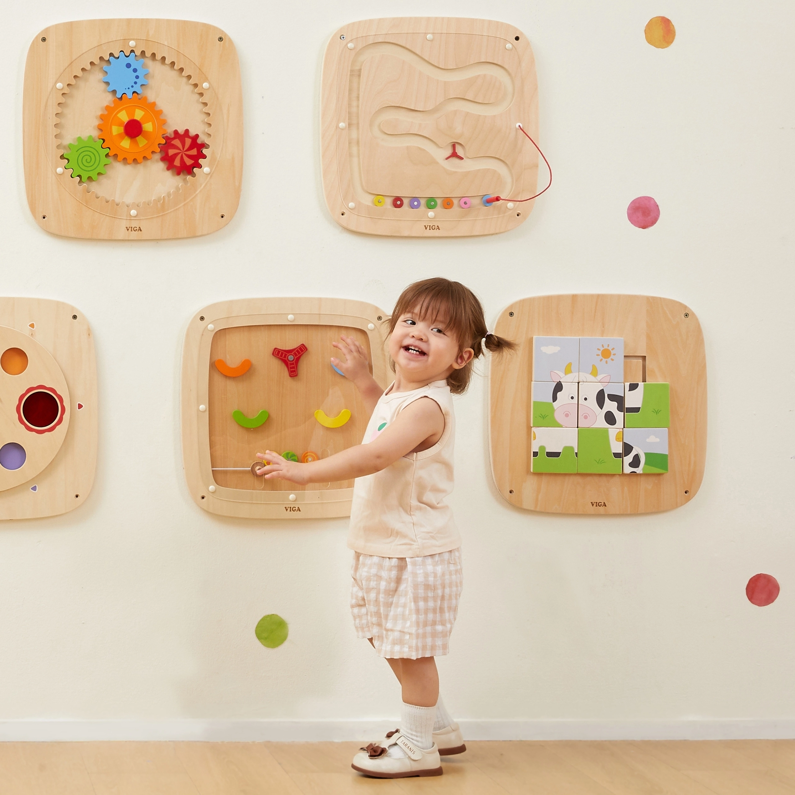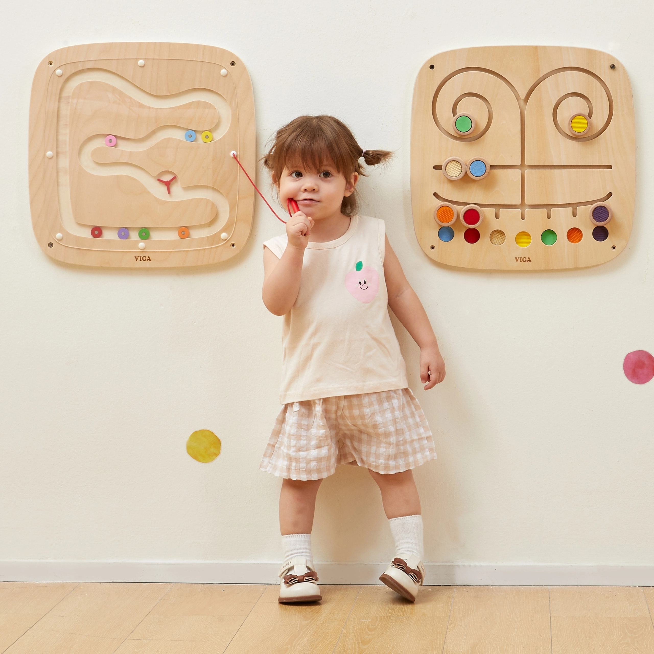 Objevte kouzlo gravitace s touto interaktivní dřevěnou tabulí VIGA! Pomocí přivázaného magnetického pera děti posouvají barevné kotoučky po dvou odlišných drahách a sledují, jak se mění rychlost a směr. Tabule je odolná, bezpečná a montovatelná na stěnu, takže šetří místo a zároveň rozvíjí jemnou motoriku, koordinaci oko–ruka a logické myšlení.