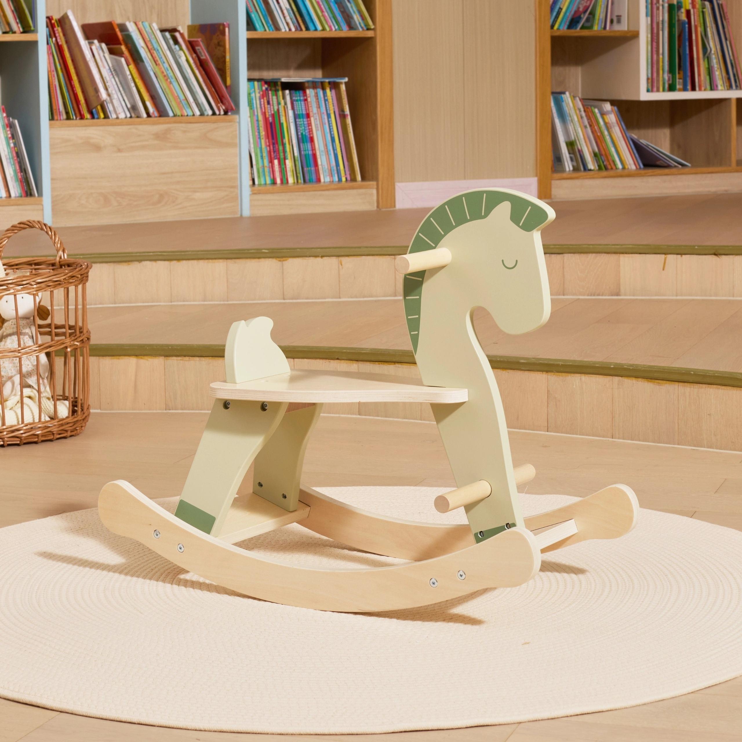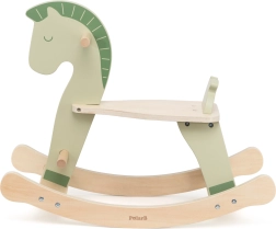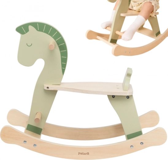Tento dřevěný houpací koník v jemné pastelově zelené barvě je skvělým společníkem pro první jízdy doma. Podporuje přirozený rozvoj rovnováhy, motoriky i sebedůvěry dítěte. Díky pevným madlům a stupačkám se děti cítí jistě a bezpečně, zatímco hladce tvarované lyžiny zaručují plynulé a stabilní houpání.