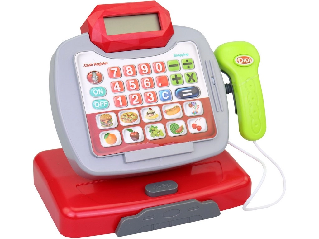 Tato realistická dětská pokladna je skvělým doplňkem ke hře na obchod. Díky světelným a zvukovým efektům a funkčnímu scanneru posouvá dětskou fantazii na další úroveň. Integrovaná digitální kalkulačka usnadní sčítání a přehled o nákupech.