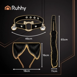 Vyjádři svou fantazii s 3dílnou sadou RUHHY, která kombinuje styl, zábavu a pohodlí. Měkké umělé kožešinové provedení v elegantní černé barvě vypadá efektně na fotkách i videích a je příjemné na dotek. Tvarovatelný ocas s pružným drátkem snadno nastavíš do libovolného tvaru a choker s dvojicí zvonečků dodá hravý akcent. Opaska s ušima drží díky praktickým zabezpečením pevně na hlavě.