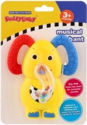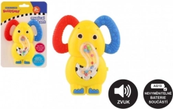 Chrastítko/Kousátko slon plast 10x12cm na baterie se zvukem na kartě 3m+