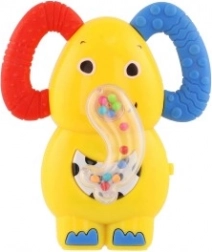 Veselé chrastítko po zmáčknutí tlačítka hraje melodie. Sloník má otočný chobot s kuličkami.